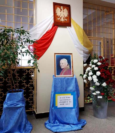W naszej szkole z okazji tej rocznicy została przygotowana okolicznościowa wystawa poświęcona temu Wielkiemu Rodakowi.