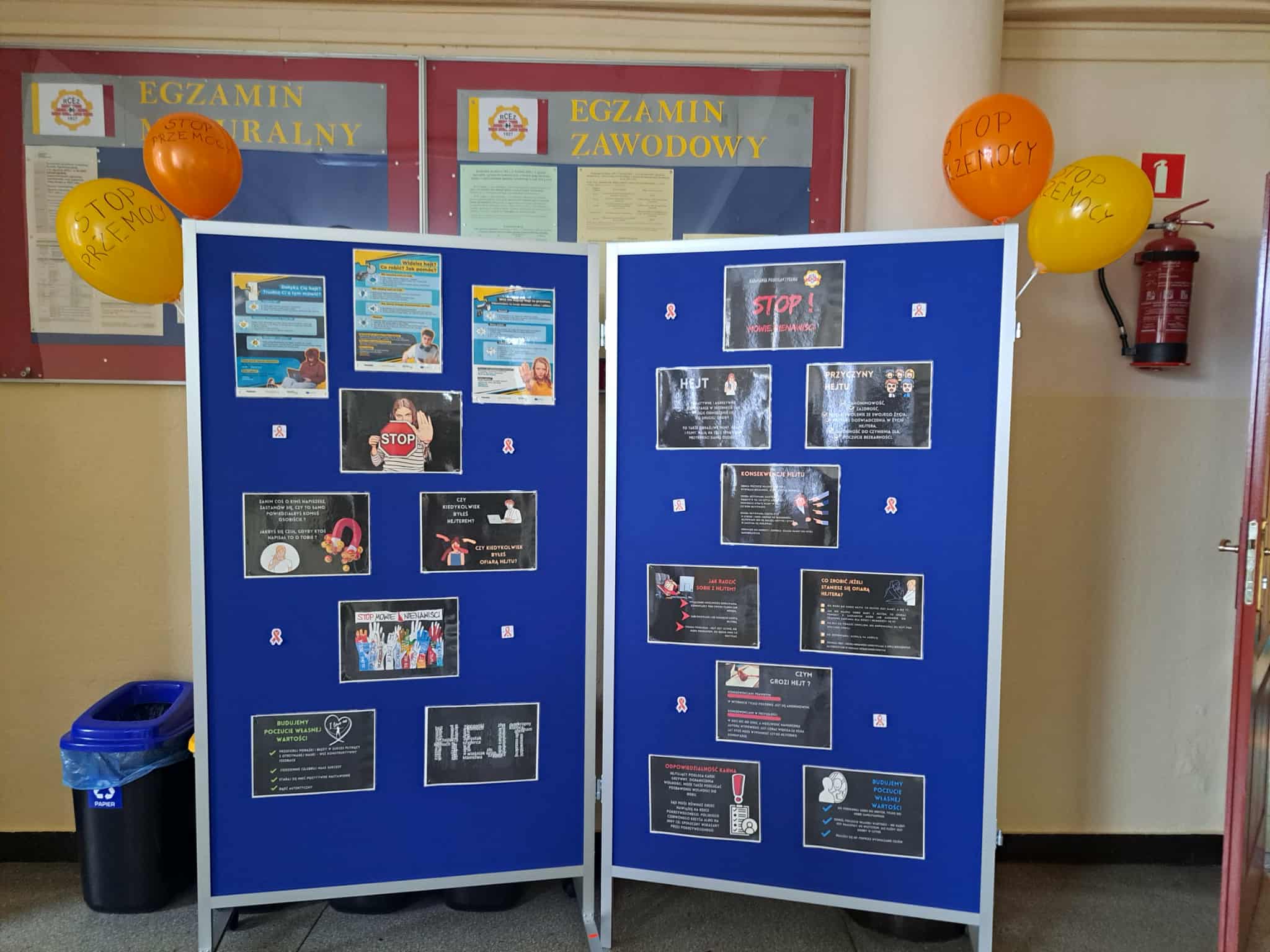 • W dniu 29 września 2025r. Samorząd Uczniowski przeprowadził w naszej szkole kampanię przeciw przemocy ✋. Na korytarzach pojawiły się pomarańczowe wstążeczki i balony z napisem STOP PRZEMOCY, a uczniowie założyli ubrania koloru pomarańczowego - barwy symbolizującej sprzeciw wobec przemocy❤️. Nie zabrakło również wsparcia ze strony pani Dyrektor Doroty Bułgajewskiej - Muzyki, nauczycieli, pani pedagog oraz pracowników, którzy razem z nami pokazali, że wszyscy mówimy jednym głosem: NIE dla przemocy, TAK dla szacunku i życzliwości 👍💪💕