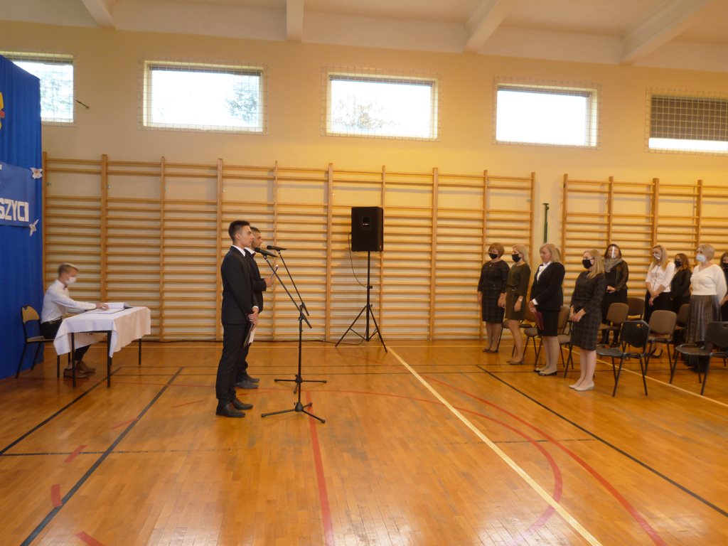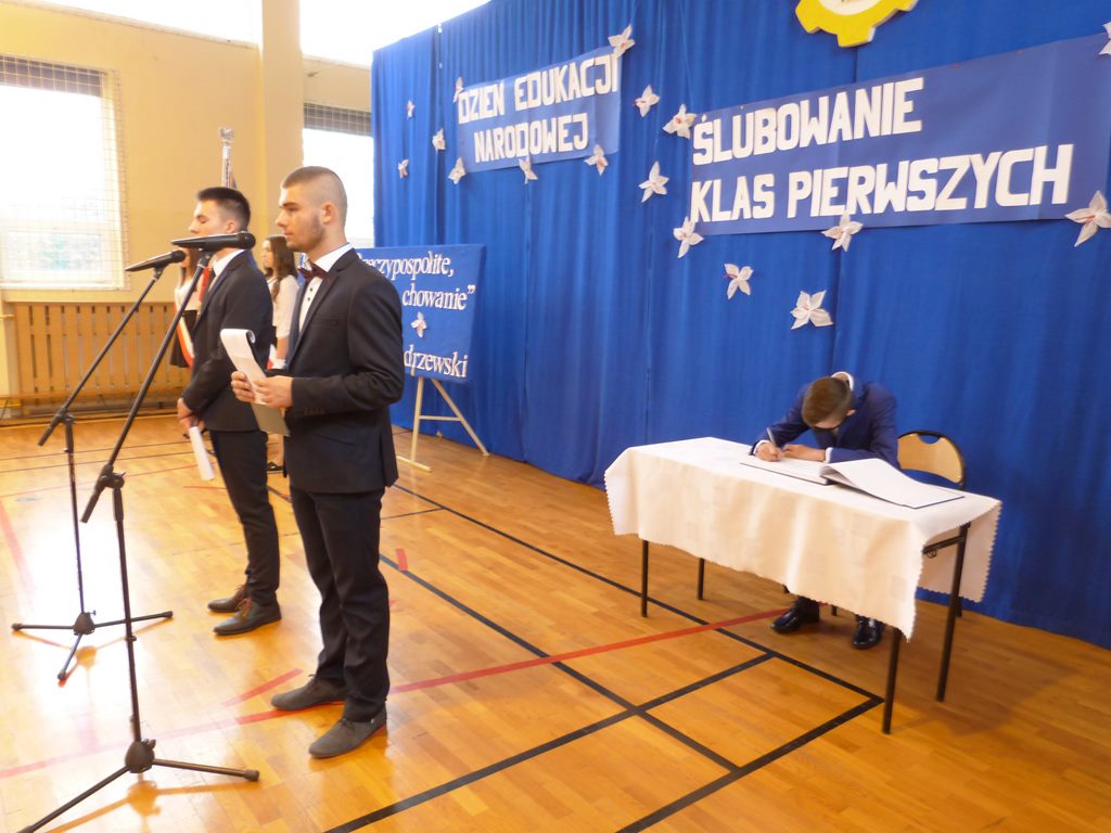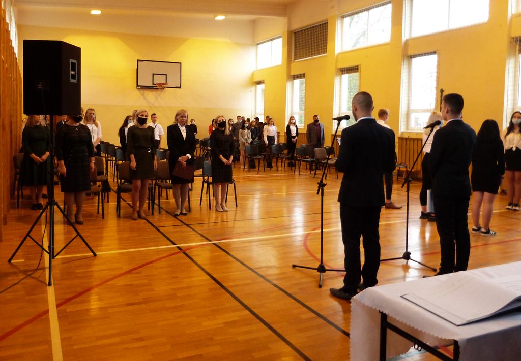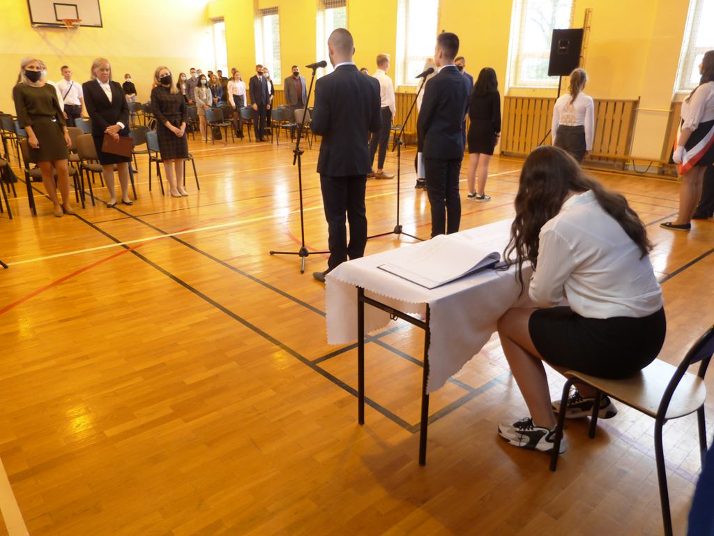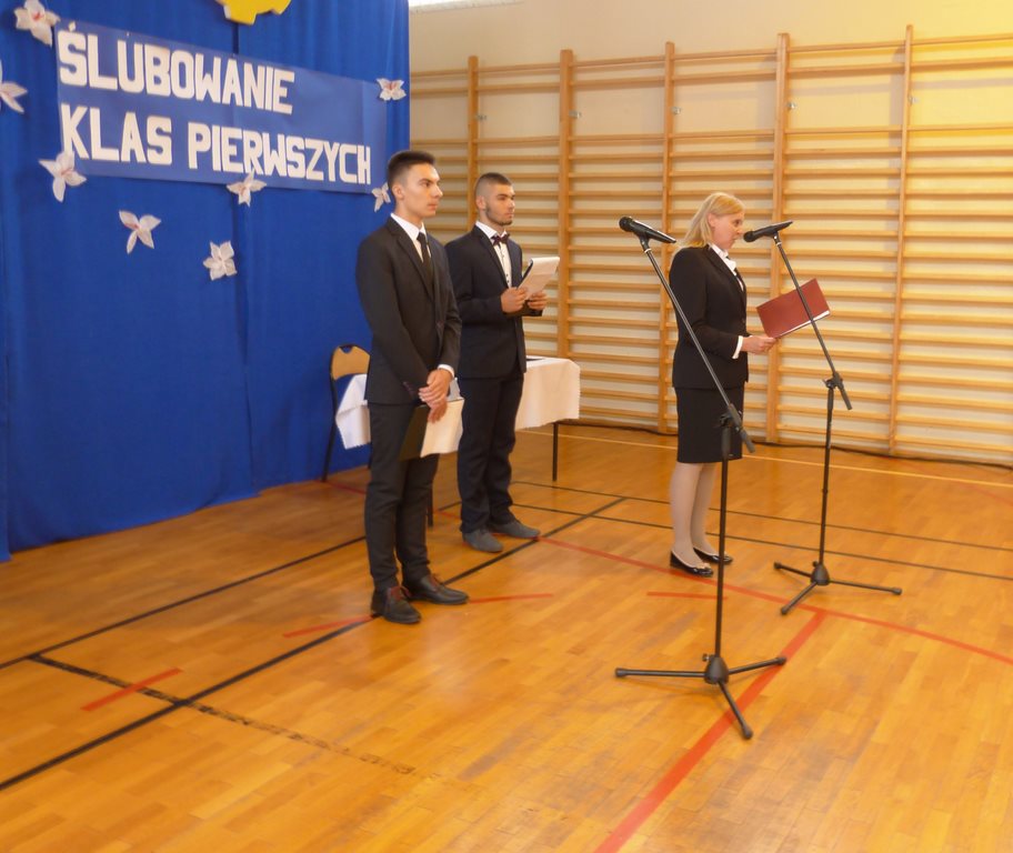 Ważnym punktem uroczystości było ślubowanie klas pierwszych. Oficjalnie do grona naszych uczniów przyjęliśmy rzeszę wspaniałych pierwszoklasistów. Potwierdzeniem tego faktu stało się złożenie ślubowania uczniów ośmiu klas pierwszych Technikum Zawodowego i Szkoły Branżowej I Stopnia Nr 1.