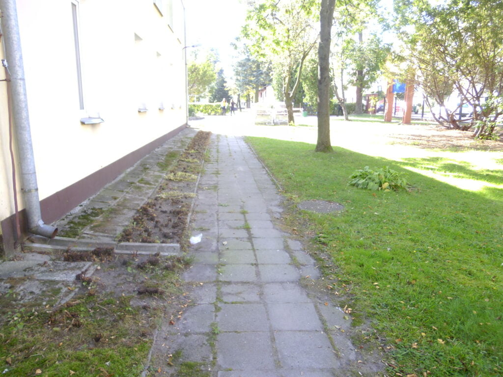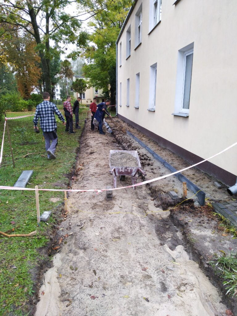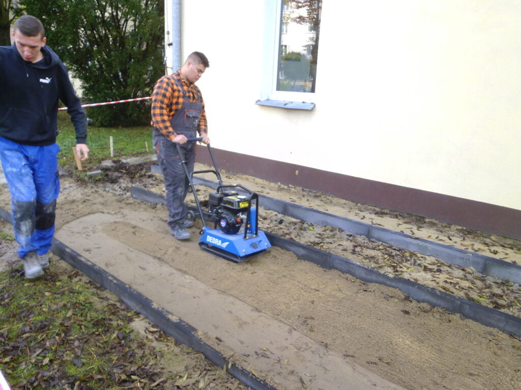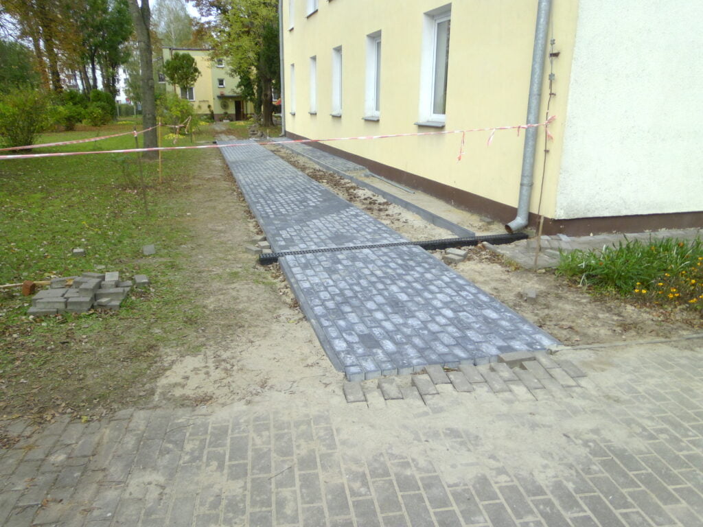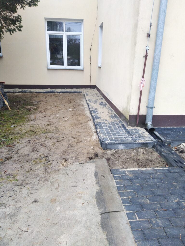 • Ułożenie nowego chodnika i opaski odwadniającej