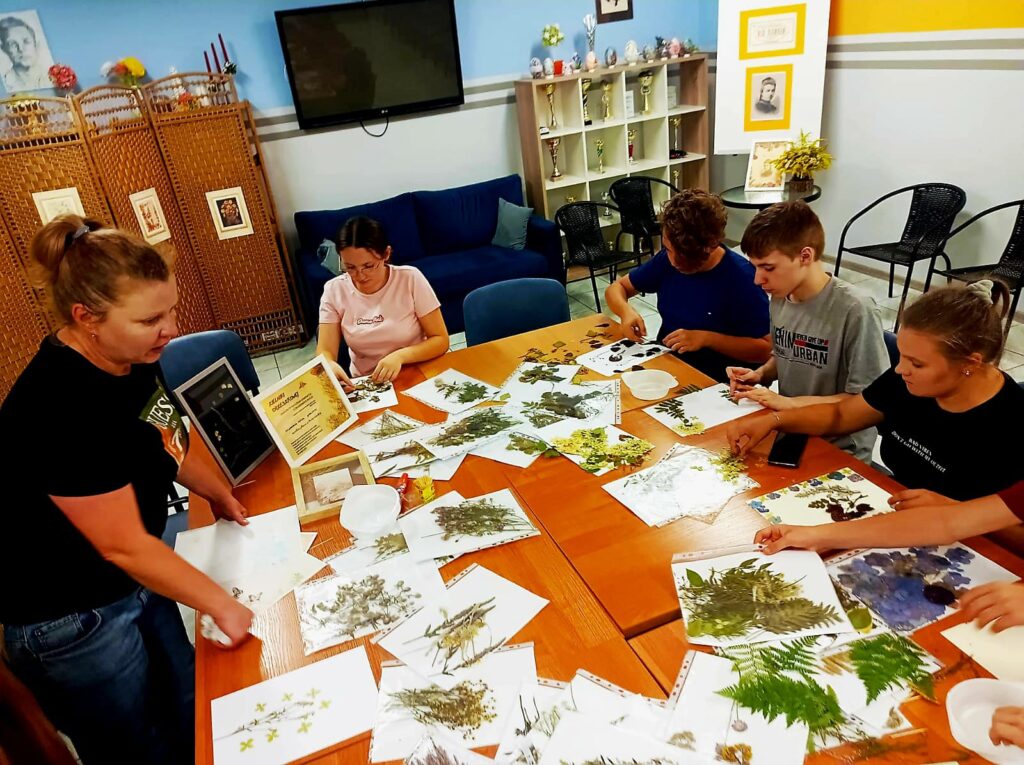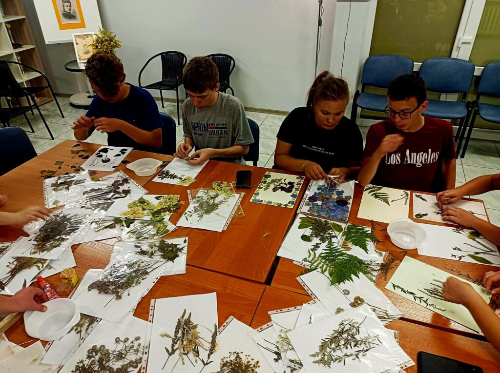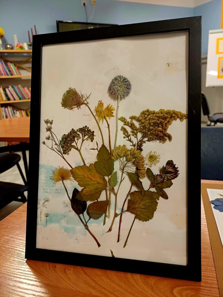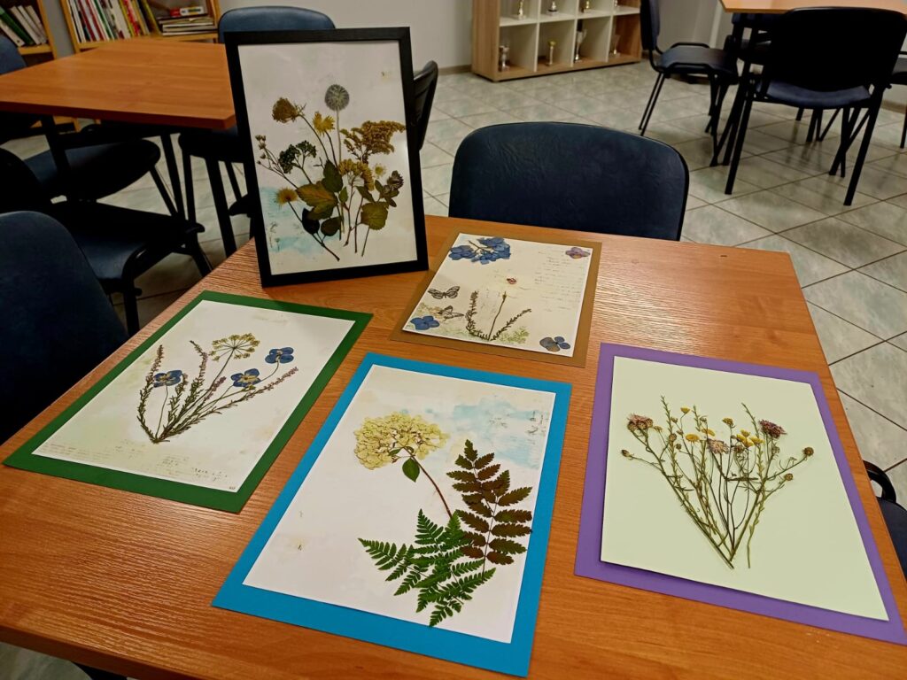 Podczas dzisiejszych zajęć wychowankowie poznali tajniki warsztatu Elizy Orzeszkowej i wykonali własne kompozycje z zasuszonych roślin na wzór tych stworzonych przez wybitną pisarkę w albumach florystycznych.