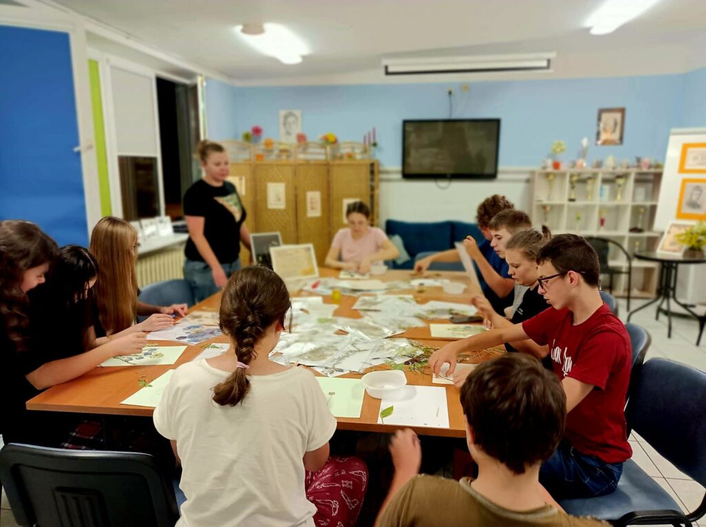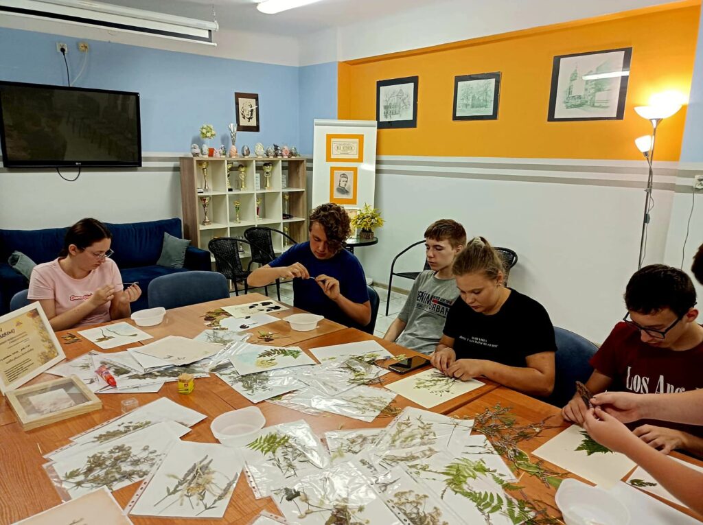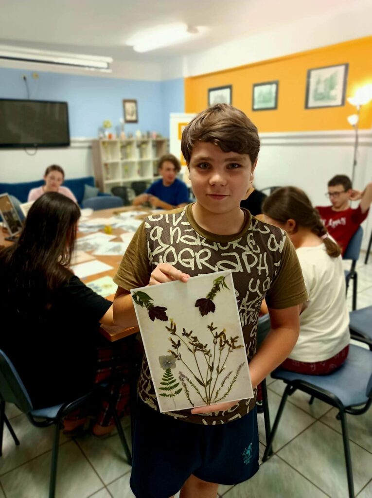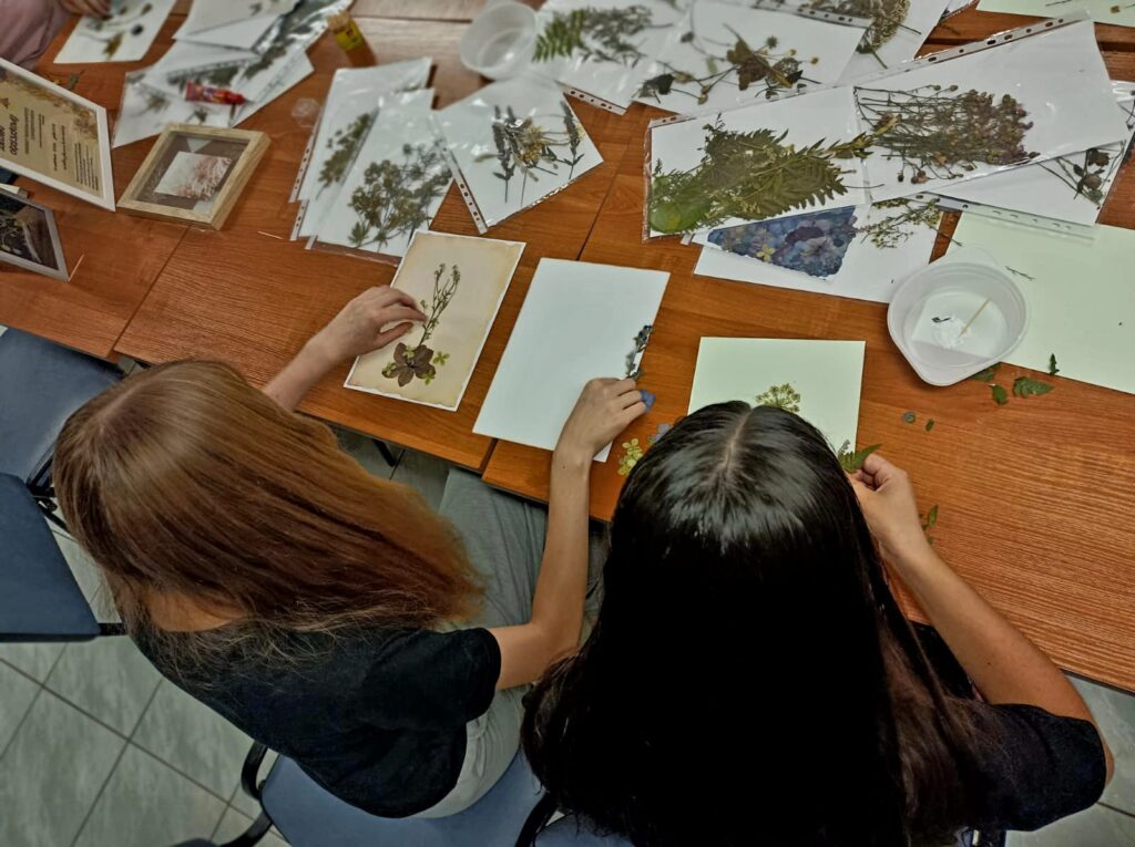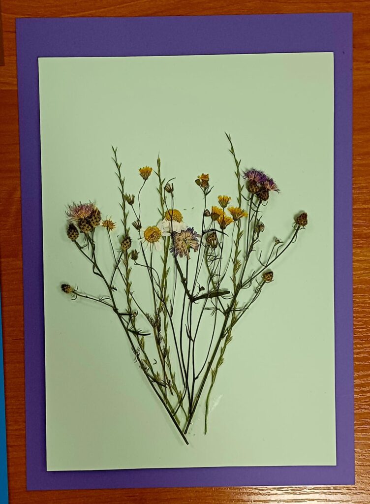 Podczas dzisiejszych zajęć wychowankowie poznali tajniki warsztatu Elizy Orzeszkowej i wykonali własne kompozycje z zasuszonych roślin na wzór tych stworzonych przez wybitną pisarkę w albumach florystycznych.