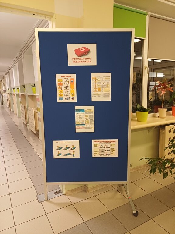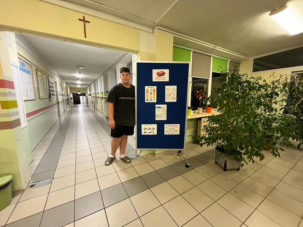 Na holu bursy można było zobaczyć gazetkę tematyczną przygotowaną przez wychowanków, która przypominała, jak ważna jest szybka reakcja w sytuacjach zagrożenia życia.