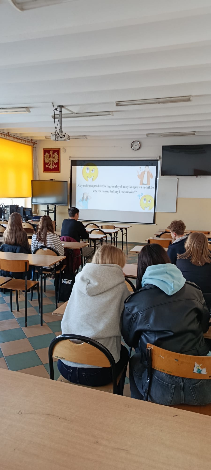 Uczniowie klas 5TB, 2TEM, 2TEK, 3TB, 3TR oraz 3A uczestniczyli w zajęciach zorganizowanych w ramach szkolnego Klubu Europejskiego Eurosfera pt. „Oznaczenia geograficzne produktów”.