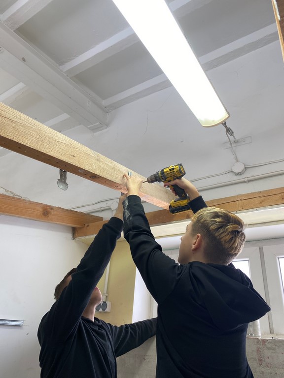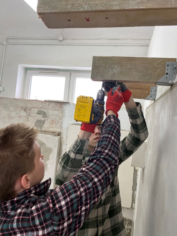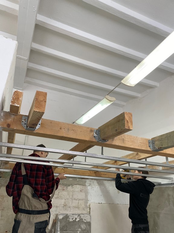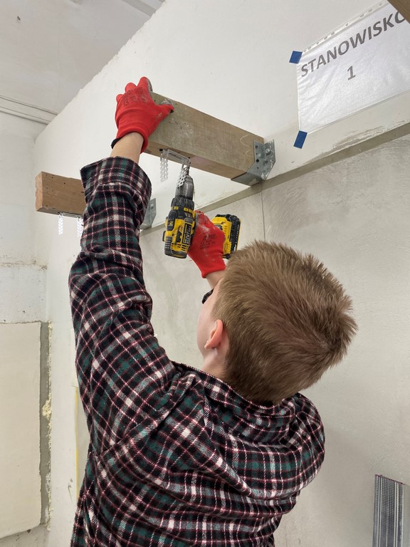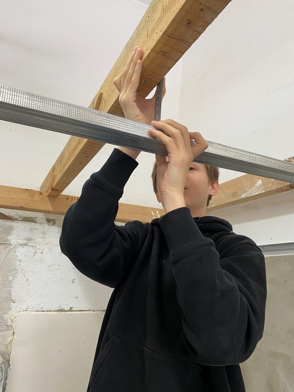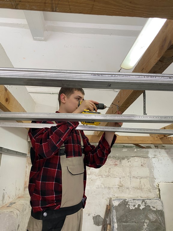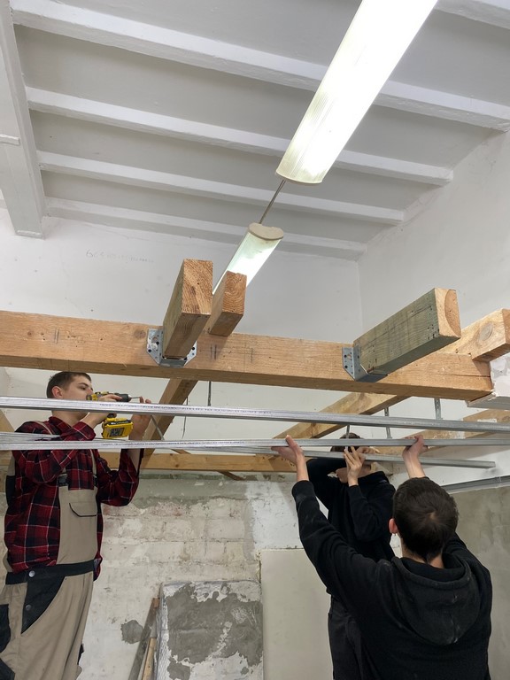 • Zajęcia praktyczne klasy 1T, podczas których uczniowie wykonują sufit podwieszany.